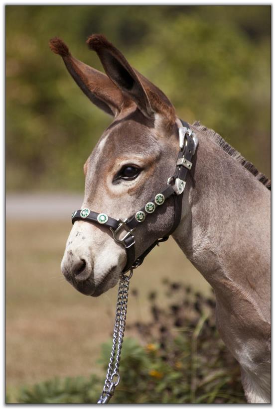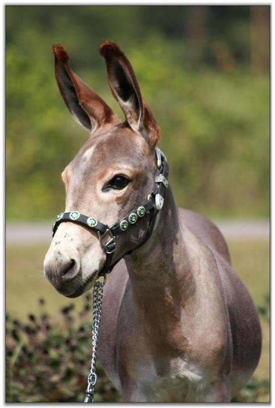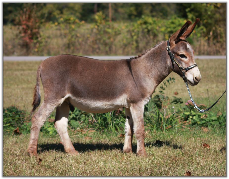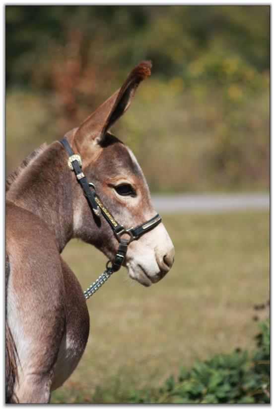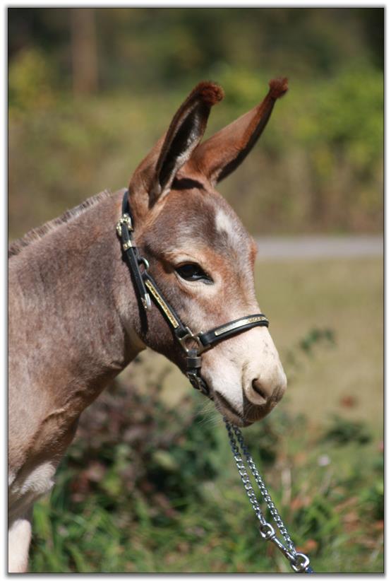 Big is perfect in evey way. Legs, bite, topline plus personality. He has a short, wide gorgeous head with expressive eyes. He has 'top of the line herd sire' written all over him. He is guaranteed healthy and sound as are all of our donkeys are. He will be up to date on all vaccinations including West Nile before he leaves our farm. He has a negative coggins report dated 7/02/10. He is photographed above on 9/25/10 @ 7 months of age the day after he was body clipped and then 3 weeks later on October 15th, 2010. As you can see his color has deepened to a much richer red. Big has a completely full 4-generation pedigree with no missing information! Big has already had his 1st set and booster vaccinations 3 weeks later of East/West Encep/Tetanus and West Nile. He will be given Rhino/Influenza vaccinations plus his booster before he leaves our farm. A big 'thank-you' to Jenny Eastep for helping us clip and photograph Mister Big in his 3 month old video below. Another big 'thank-you' to Dena Wilson for her expert handling of Big for his 7 month video and his latest photos and videos taken on 10/15/10.